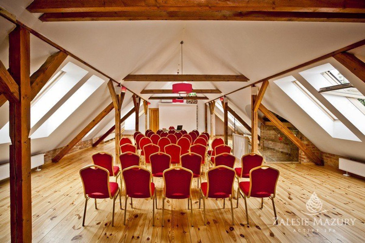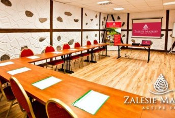 Zalesie Mazury Active Spa dysponuje pięcioma profesjonalnymi salami konferencyjnymi. Wszystkie sale są klimatyzowane i posiadają nowoczesne wyposażenie, takie jak rzutniki i ekrany multimedialne, nagłośnienie, a także tablice flipchart. Sale przystosowane są zarówno do organizacji kameralnych spotkań biznesowych, jak i dużych wykładów i konferencji nawet dla 200 uczestników.