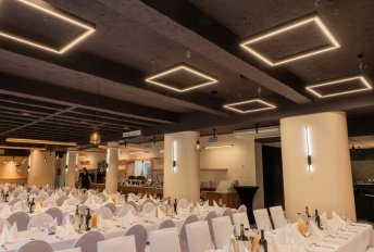 Dodatkowo obiekt dysponuje mniejszą salą konferencyjną na 50 osób "CzarnoBiałą" oraz namiotem "DoReMi" na 150 osób.