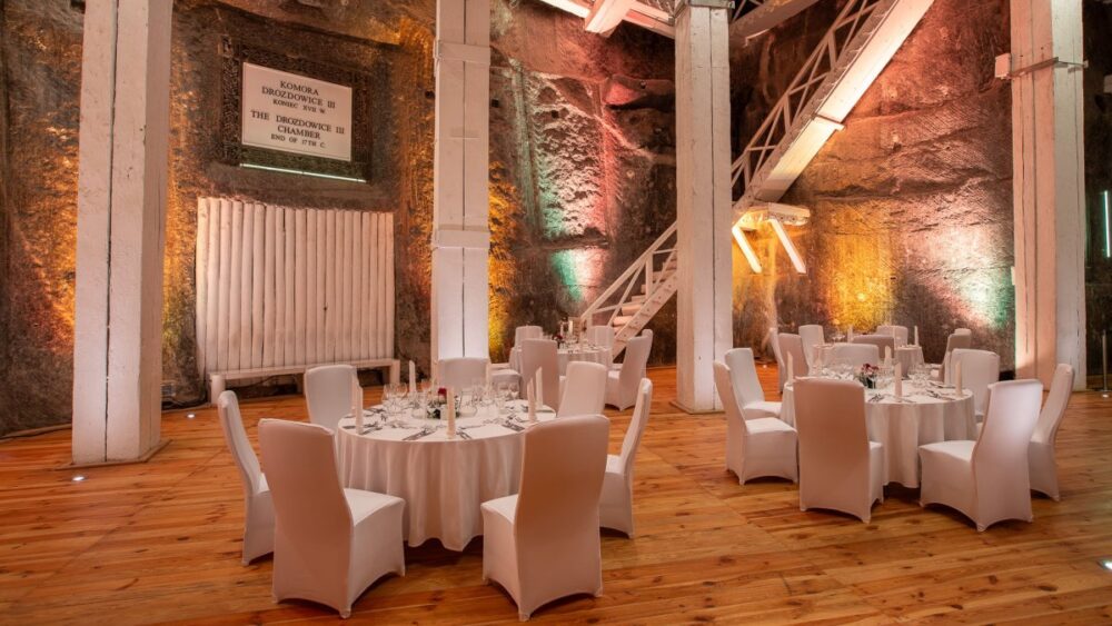 Kopalnia Soli Wieliczka to jedna z najsłynniejszych atrakcji turystycznych w Polsce, położona kilka kilometrów od Krakowa. Podziemne komory ponad 100 m pod ziemią tworzą niezwykłą scenerię do organizacji konferencji, bankietów i eventów firmowych.