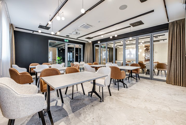 Do dyspozycji Gości oddano nowoczesne sale konferencyjne z dostępem do światła dziennego i możliwością pełnego zaciemnienia. Przestrzenie można dowolnie aranżować, a największa z nich – po połączeniu sal – oferuje 90 mkw. i pomieści do 60 osób w ustawieniu teatralnym. Sale wyposażone są w niezbędny sprzęt, w tym rzutnik, ekran, nagłośnienie, mikrofon oraz flipchart, co pozwala na sprawną organizację każdego wydarzenia.