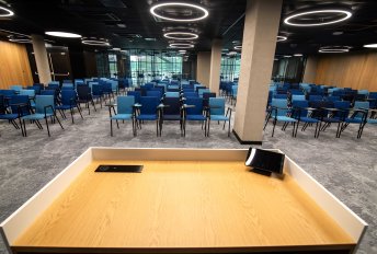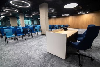 wykorzystywana jako miejsce pracy dla mediów podczas wydarzeń. Idealna do organizacji warsztatów, wyposażona w zestawy gniazdek elektrycznych i internetowych umieszczonych na 20 słupkach. Możliwość podziału na 2 mniejsze sale.