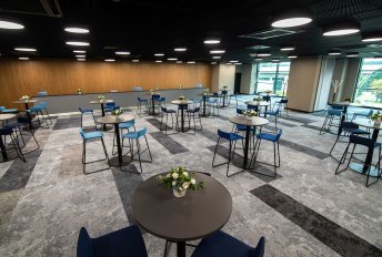 Ponadto obiekt oferuje dodatkowe przestrzenie umożliwiające organizację wydarzeń biznesowych i firmowych.