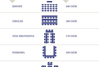 Największa Sala Widokowa pomieści do 440 osób, a Sala Restauracyjna do 300. Na spotkania w mniej formalnym klimacie można zorganizować w Karczmie lub Piwniczce Dworskiej.