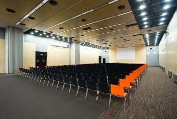 - Salę 1 - 546 miejsc w układzie teatralnym ( z możliwością podziału na 2 lub 3 mniejsze pomieszczenia),