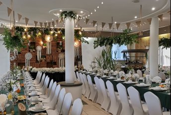 W pensjonacie Karmuszka znajduje się przestronna sala bankietowa, która zachwyci zarówno miłośników klasyki, jak i osoby ceniące nowoczesność. Wnętrze posiada duże okna oraz jasne ściany, co pozwala na dowolną aranżację wnętrza, doprasowaną do wydarzenia. Eleganckie wnętrze przedzielają owalne filary, od których rozchodzą się podwieszenia przy suficie. Dodaje to niezwykłego kunsztu, a dodatkowo dzięki nim można wyraźnie oddzielić część ze stołami od miejsca do tańczenia. Doskonałe nagłośnienie pozwala zorganizować profesjonalne wydarzenia, lub huczną zabawę, a klimatyczne oświetlenie umożliwia stworzenie rodzinnej i ciepłej atmosfery. Karmuszka posiada ogromne doświadczenie w planowaniu różnorodnych uroczystości. Co więcej, obiekt posiada w swoim zapleczu wiele dekoracji, które z przyjemnością udostępni organizatorom. Obsługa dołoży wszelkich starań, aby organizowane wydarzenie spełniło oczekiwania wszystkich Gości. Dodatkowo kolejnym atutem jest możliwość wyjścia na duży, zielony ogród, który również idealnie sprawdzi się jako miejsce wydarzeń plenerowych lub atrakcji dla Gości na świeżym powietrzu.