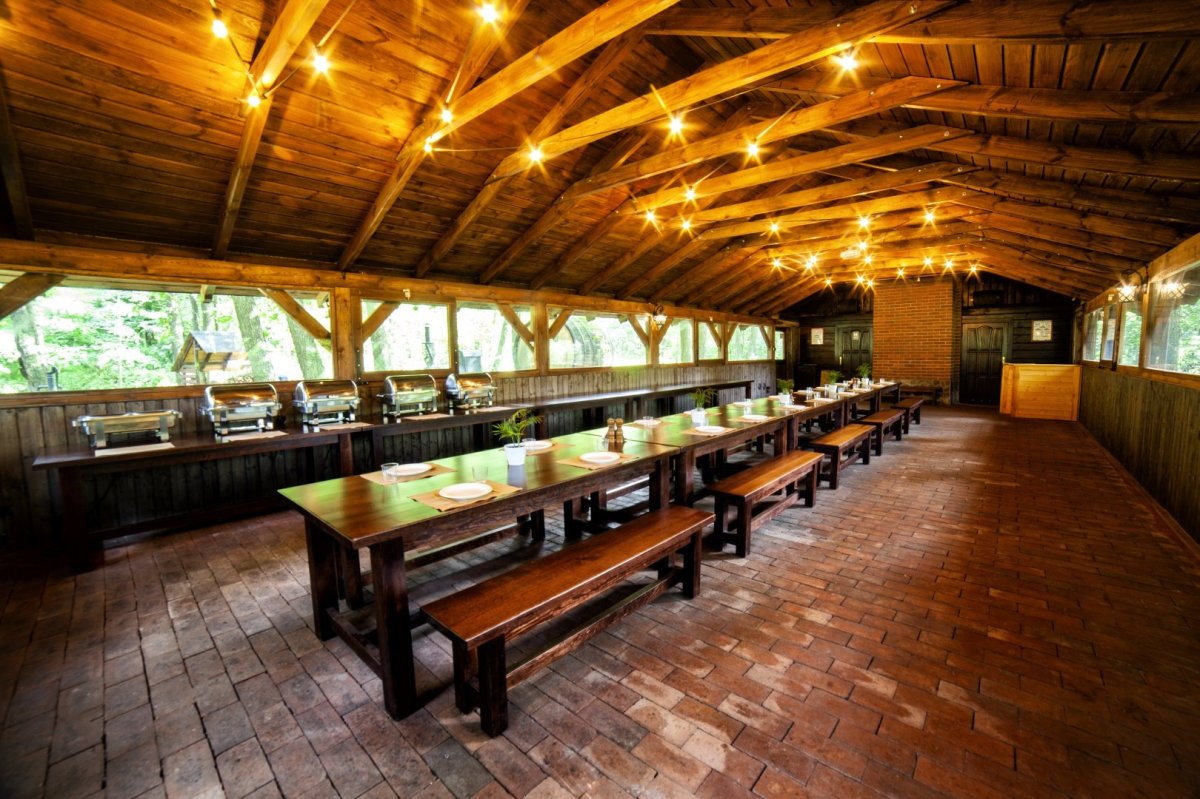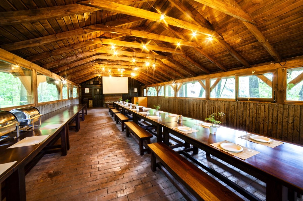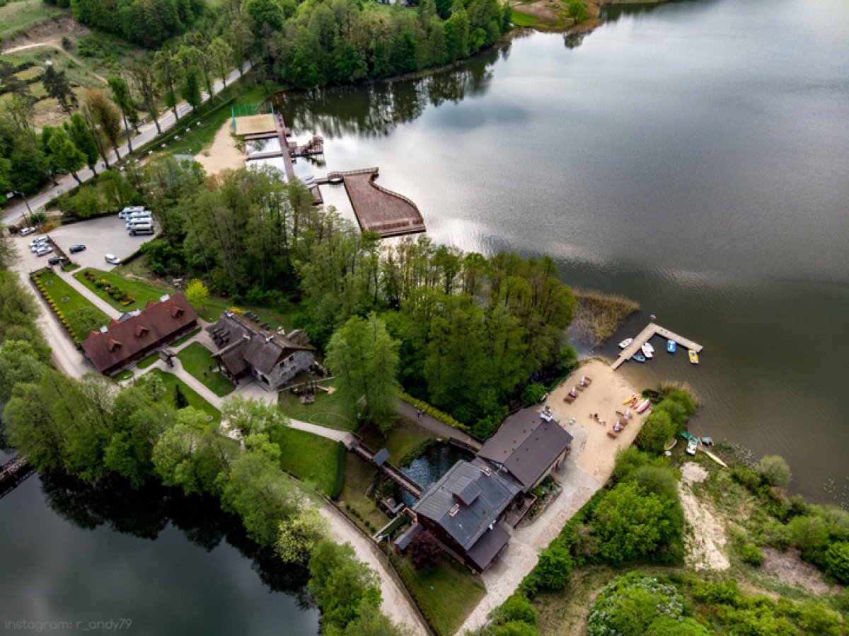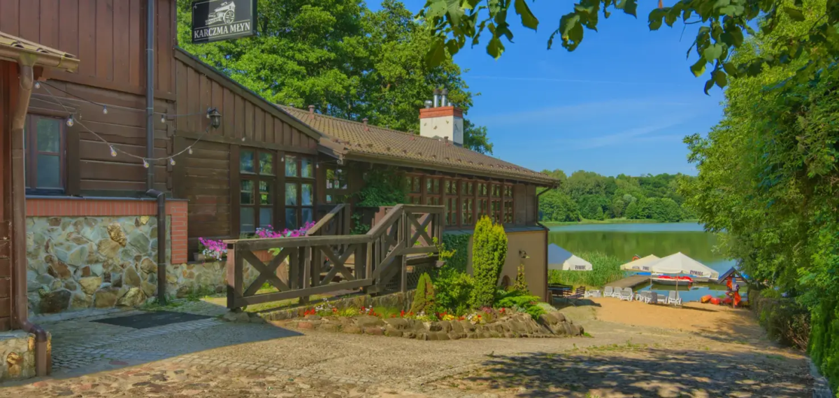 Do kompleksu przynależy także Kuźnia Grill usytuowana w otoczeniu zieleni, tuż nad linią wody, co gwarantuje kameralną atmosferę i wyjątkowe widoki. Do obiektu prowadzą dwa drewniane pomosty, które już od pierwszych chwil budują nastrojowy charakter przestrzeni i wprowadzają Gości w niepowtarzalny klimat. To idealne miejsce na organizację biesiad, eventów firmowych oraz rodzinnych uroczystości w scenerii jeziora i lasu.