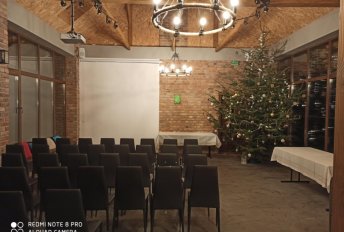Sala, w której odbywają się eventy, jest przestronna, jasna oraz gustownie urządzona. Posiada ona bezpośredni dostęp do światła dziennego, które sprzyja koncentracji i skupieniu.