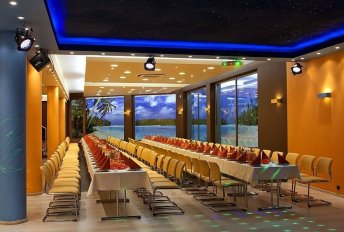 W ofercie znajduje się wyposażona w nowoczesny system klimatyzacji sala konferencyjno-bankietowa o wielkości 300 m2, w której może zasiąść jednocześnie nawet 120 osób, zapewniają komfortowe warunki do pracy, jak i zabawy.