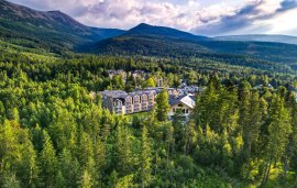 Hotel*** ARTUS Prestige SPA to miejsce gdzie nowocześnie urządzone wnętrza wspaniale komponują się ze 120 letnią historią obiektu. Położenie w bezpośrednim sąsiedztwie Karkonoskiego Parku Narodowego wyróżnia go wśród innych hoteli. Cisza, spokój oraz otoczenie zieleni sprawiają, że pobyt zamienia się w wymarzony wypoczynek. Dla gości przygotowano 76 komfortowo wyposażonych pokoi w tym pokoje 1 i 2 osobowe, pokoje Deluxe oraz dwupoziomowe, przestronne Studia Rodzinne.