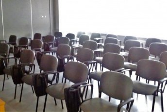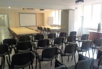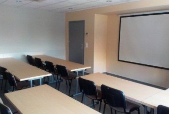 Wyposażenie: krzesła z podłokietnikami i pulpitami, projektor, ekran, wifi, flipchart.