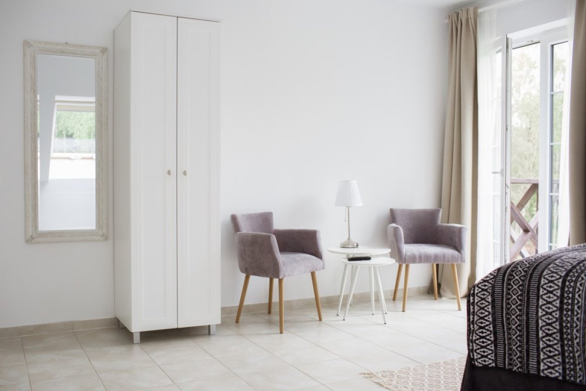 W Martianach na Gości czekają stylowo urządzone pokoje, które pozwolą na pełny wypoczynek po dniach wrażeń. Każde pomieszczenie zaaranżowane jest w jasnych i stonowanych barwach, co gwarantuje zachowanie spokoju i harmonii. Co więcej, pomieszczenia oferują wspaniałe widoki na mazurską przyrodę z dużych okien lub balkonów. Do dyspozycji Gości pozostają pokoje: