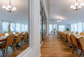Sale konferencyjne w Dworze Konstancin urządzone są w eleganckim, pełnym klasy stylu. Wystrój, dekoracje oraz widok z okien na las sprawiają że w jest to wyjątkowe miejsce na organizację konferencji czy szkoleń.