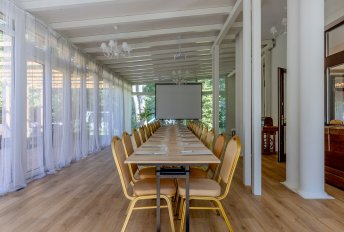Dla klientów biznesowych pracownicy Dworu Konstancin przygotowali 4 profesjonalne, klimatyzowane sale konferencyjne. Do dyspozycji jest największa Sala Ogrodowa na 80 osób w ustawieniu teatralnym i 40 osób w ustawieniu w podkowę. Sala tarasowa (30 osób) oraz dwie mniejsze – Sala Zegarowa (18 osób) Sala Lustrzana (12 osób) , idealne na kameralne spotkania pracowników firm czy szkolenia w niedużych grupach. Wszystkie sale posiadają wyposażenie potrzebne w czasie konferencji czy rozmów biznesowych, takie jak projektor, flipchart, ekran, odpowiednie nagłośnienie oraz dostęp do internetu i możliwość zaciemnienia pomieszczeń roletami. Dodatkowo, w Sali Ogrodowej jest również miejsce dla obsługi gastronomicznej i możliwość podziału przestrzeni, aby dopasować ją do rodzaju i charakteru wydarzenia oraz liczby uczestników.