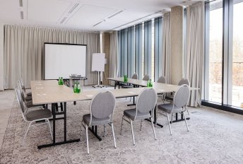 Duże okna zapewniają stały dostęp do światła. Istnieje możliwość zaciemnienia pomieszczeń, w celu polepszenia jakości wyświetlanych na ekranach prezentacji. Prelegenci mogą korzystać z rzutnika multimedialnego oraz tablicy typu flipchart. Sale konferencyjne są doskonale nagłośnione. Drewniane akcenty znacząco wyciszają pomieszczenia, a jasne ściany niwelują poczucie zmęczenia podczas długich szkoleń.