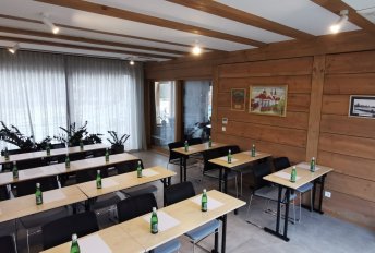 Sala restauracyjna może wygodnie pomieścić 40 osób przy oddzielnych stolikach, a w układzie eventowym jest przygotowana na obsługę do 30 gości.