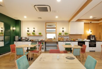 Obiekt oferuje dwie dobrze wyposażone sale konferencyjne, które łączą nowoczesne technologie z komfortowym, przyjaznym wnętrzem. Dzięki temu uczestnicy mogą skupić się na pracy w sprzyjającej atmosferze, korzystając z profesjonalnego sprzętu i wygodnych przestrzeni. Naturalne światło oraz starannie zaprojektowane otoczenie tworzą inspirujące warunki do efektywnej współpracy i kreatywnego myślenia.