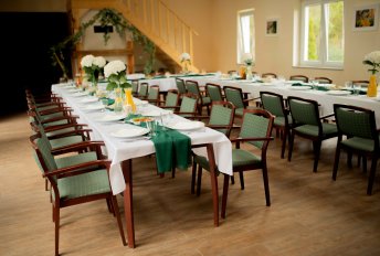 W ofercie znajdują się wygodne miejsca noclegowe, przestronny salon na spotkania, sala bankietowo konferencyjna na 50 osób oraz rozległy teren wokół, na którym można korzystać np. ze sprzętu do grillowania.