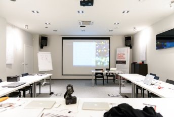 Sala szkoleniowa posiada 55 m2 powierzchni, którą można zaaranżować w dowolny sposób. Stworzyć w niej można przestrzeń warsztatową dla ok. 25 osób lub wykładową dla 45 w układzie teatralnym.