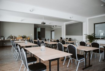 Pierwsza z przestrzeni umożliwia zaproszenie 60 osób w konfiguracji teatralnej, 40 w podkowie i 30 w ustawieniu szkolnym. Druga z kolei jest odpowiednia dla 20-25 uczestników.