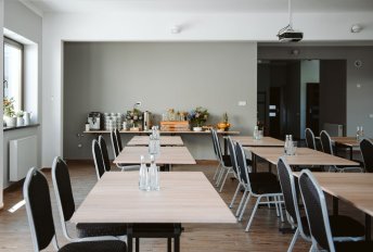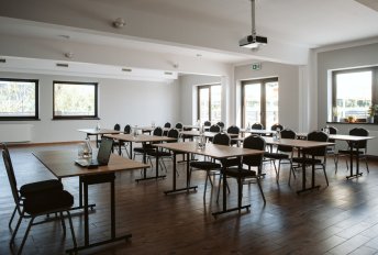 Sala konferencyjna wewnątrz obiektu jest pomieszczeniem nowoczesnym, jasnym i wyposażonym we wszystkie niezbędne sprzęty i wysokiej klasy meble. Znajdują się w niej m.in. projektor, ekran, tablica, klimatyzacja oraz bezprzewodowa sieć Internetu.