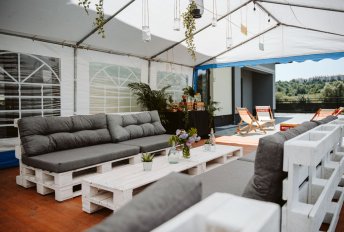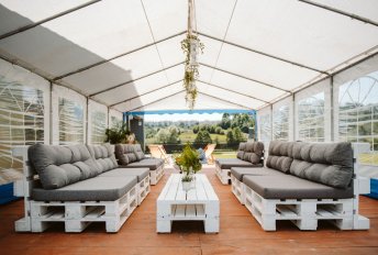 Ponadto, rozległy teren zielony wokół obiektu umożliwia rozstawienie tam namiotu eventowego nawet dla 300 gościu.