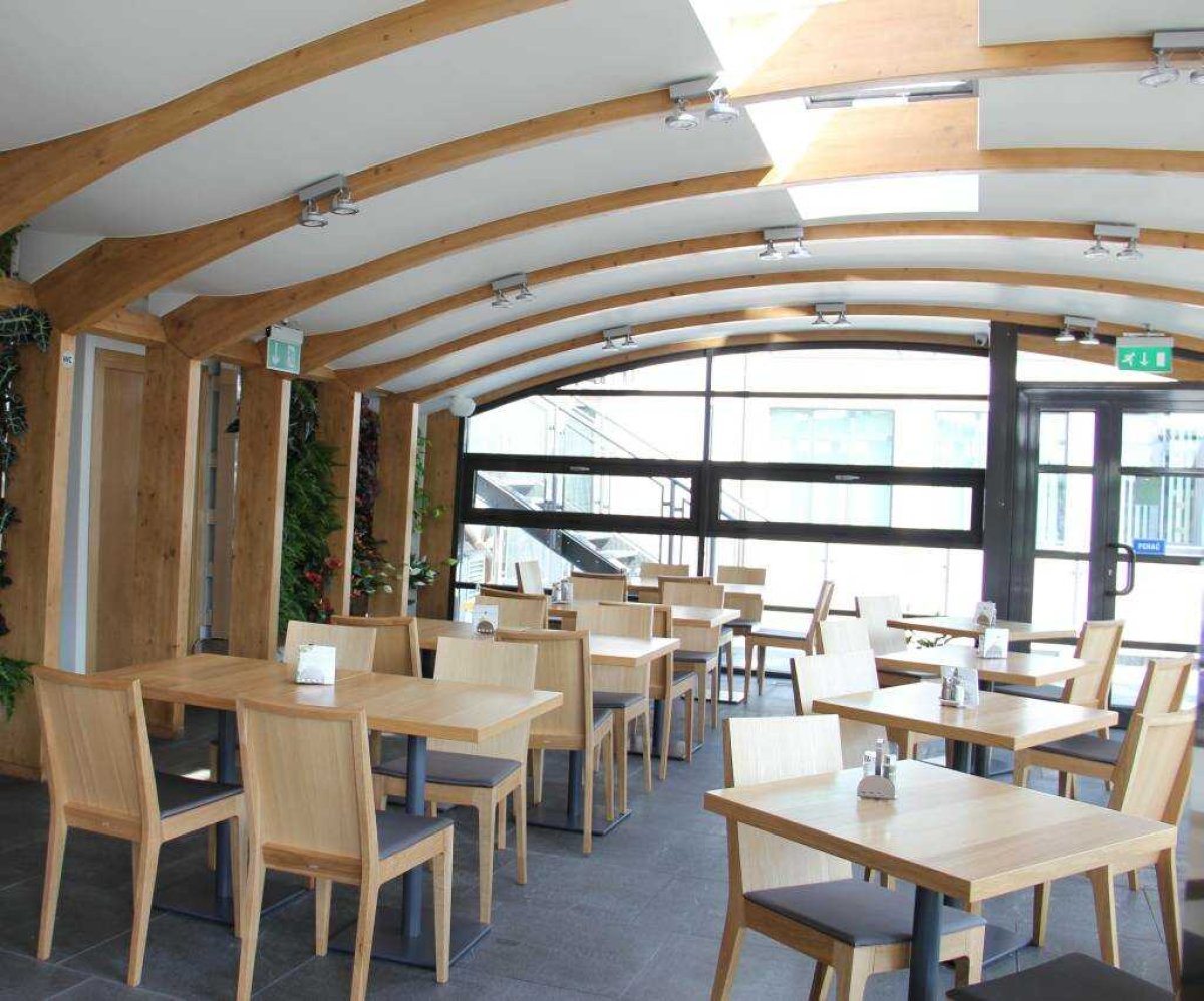 W sezonie letnim możliwe jest skosztowanie posiłków na urokliwym tarasie i w oranżerii, z których rozpościera się widok na Stare Miasto oraz na Beskidy.
