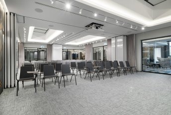 Sala D Platinum (100 metrów kwadratowych) to największa przestrzeń konferencyjna w obiekcie, która może być zaaranżowana zgodnie z wymaganiami wydarzenia - od klasycznych układów szkoleniowych po bankiety i prezentacje.