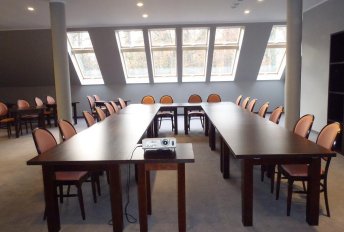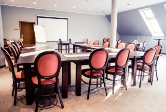 Dostępne są także mniejsze pomieszczenia dostosowane do kameralnych szkoleń i warsztatów. Podczas planowania imprezy integracyjnej, balu, jubileuszu lub bankietu można wykorzystać także Salę Balową ozdobioną owalnymi filarami i ceglanymi ścianami.