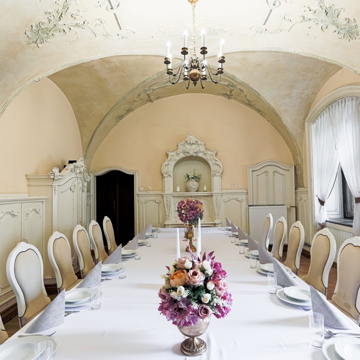 Zamek Moszna zapewnia nie tylko historyczną oprawę, ale także pełne wsparcie organizacyjne – od profesjonalnej obsługi, po możliwość aranżacji układów sal dostosowanych do potrzeb grup.