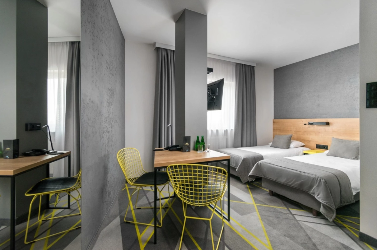 Po intensywnym dniu spotkań warto zregenerować siły. Air Hotel oferuje 58 komfortowych pokoi, urządzonych w nowoczesnym stylu i jasnej, relaksującej kolorystyce. Każdy pokój wyposażony jest w pełni wyposażony. Do wyboru są pokoje dwuosobowe, trzyosobowe oraz pokoje Standard Plus, które spełnią oczekiwania nawet najbardziej wymagających gości. To idealne miejsce na odpoczynek między spotkaniami, przed podróżą lub po dniu pełnym obowiązków.