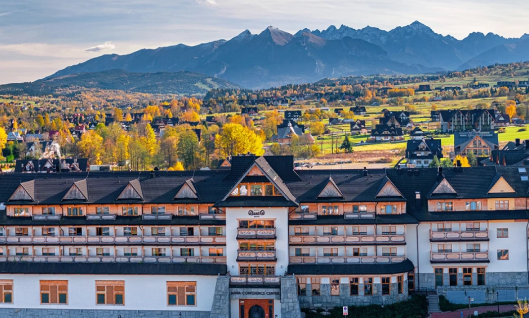 Hotel Bania położony jest w Białce Tatrzańskiej, tuż przy największym w Polsce ośrodku narciarskim. To lokalizacja, która zachwyca o każdej porze roku. Z okien i tarasów roztacza się widok na Tatry Wysokie i Pieniny, a stok narciarski pełni rolę naturalnej scenografii dla spotkań biznesowych i chwil relaksu. Bliskość gór sprawia, że konferencje tutaj nabierają wyjątkowego charakteru – uczestnicy mogą pracować w otoczeniu natury, a po godzinach w pełni korzystać z uroków Podhala.