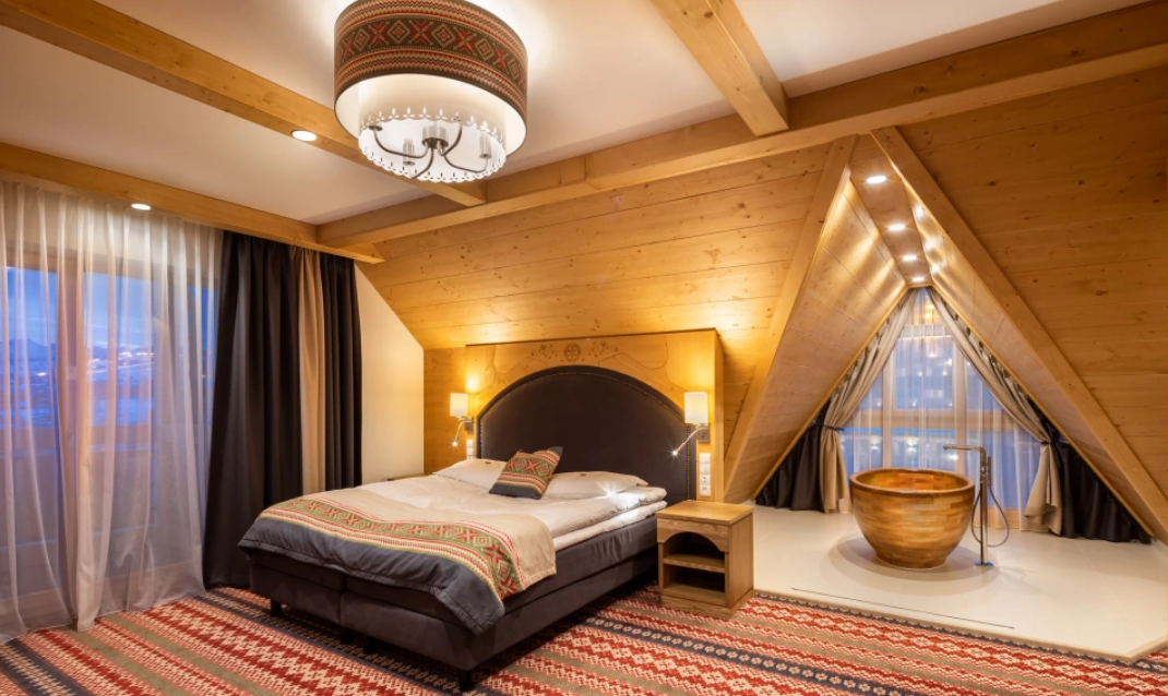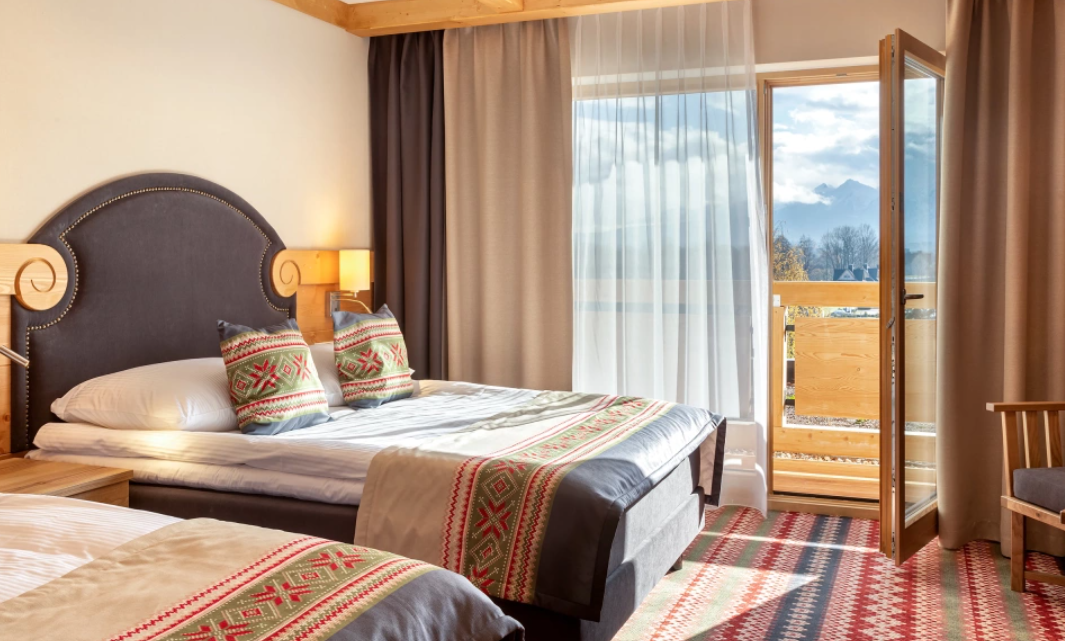 Goście Hotelu Bania mogą liczyć na komfortowe warunki zakwaterowania, które łączą nowoczesność z góralskim klimatem. Do wyboru są pokoje jedno-, dwu- i czteroosobowe, a także przestronne apartamenty dla najbardziej wymagających. Wnętrza utrzymane są w jasnych barwach, z elementami drewna i regionalnymi akcentami, co nadaje im ciepły i przytulny charakter. Z okien roztaczają się widoki na stoki narciarskie lub panoramę Tatr, które towarzyszą zarówno porannej kawie, jak i wieczornemu odpoczynkowi. Dodatkowym udogodnieniem jest przestronny garaż podziemny z niemal 300 miejscami parkingowymi, dzięki czemu uczestnicy wydarzeń nie muszą martwić się o dostępność miejsc.