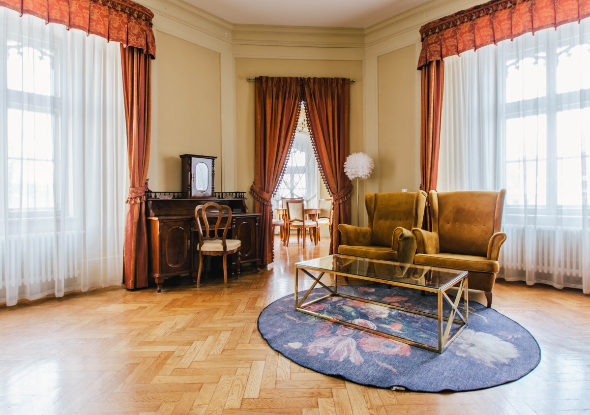 Rozciągający się na obszarze pięciu budynków, pałacowy kompleks oferuje łącznie 91 przestronnych pokoi noclegowych, które zachwycają swoim klasycznym stylem oraz nowoczesnymi udogodnieniami.