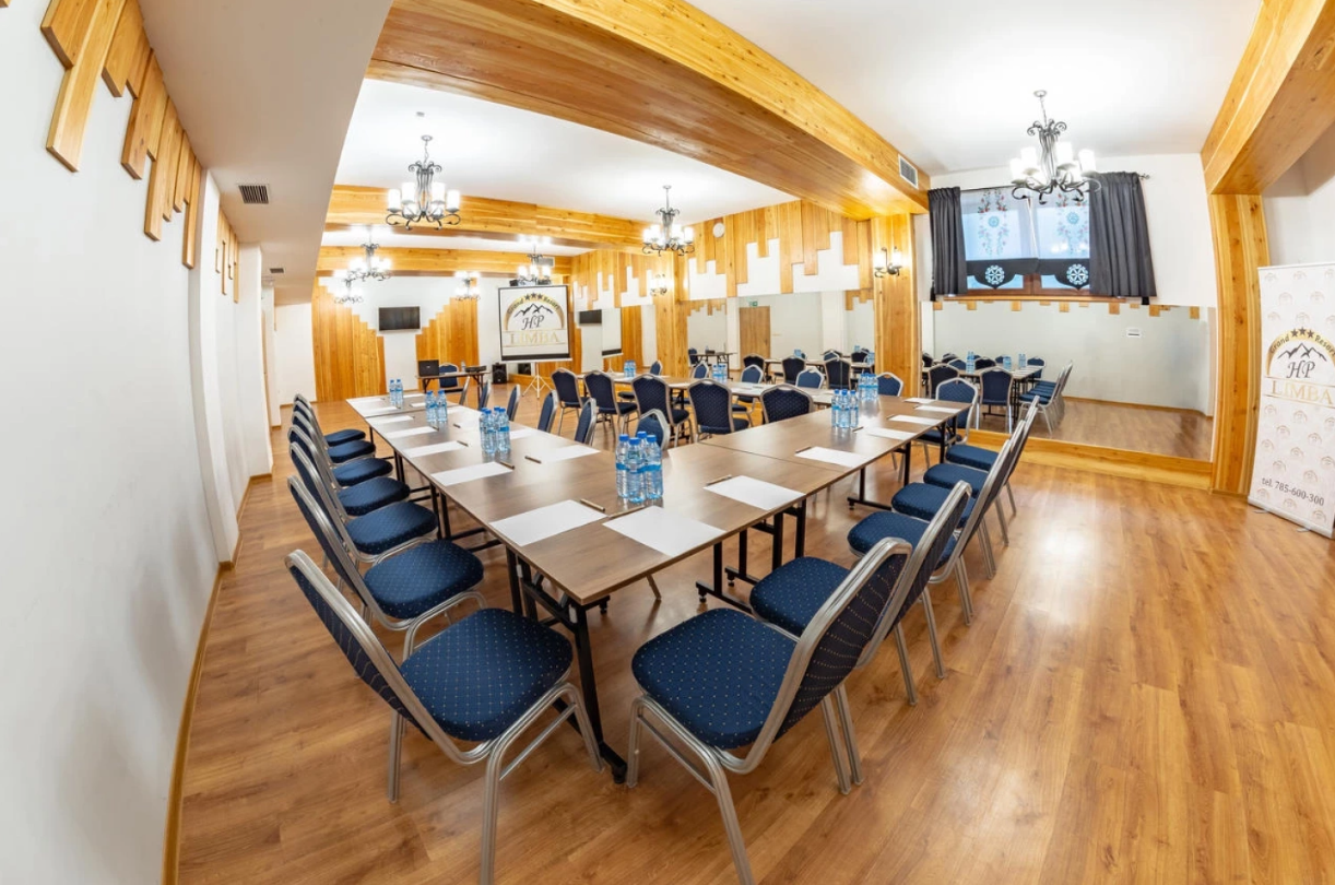 Jednym z największych atutów Limba Resort jest nowoczesne i rozbudowane centrum konferencyjne. Łącznie obiekt oferuje sześć sal o różnym charakterze – od klasycznych przestrzeni szkoleniowych po sale inspirowane podhalańskim stylem. Każda wyposażona jest w szybki internet, projektory, nagłośnienie, mikrofony oraz profesjonalne zaplecze audiowizualne, co pozwala na sprawną realizację zarówno warsztatów, jak i dużych konferencji.
