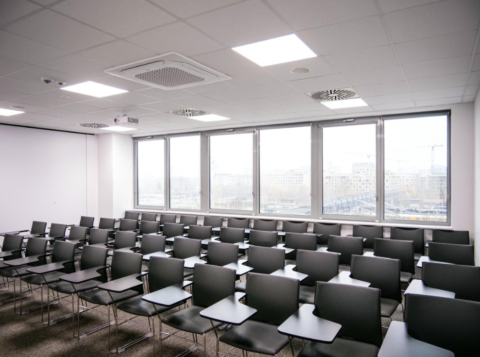 Przestrzeń Conference Point została zaprojektowana z myślą o długich, intensywnych spotkaniach biznesowych. Nowoczesny system klimatyzacji i wentylacji automatycznie dostosowuje się do liczby uczestników, zapewniając odpowiednią cyrkulację powietrza przez cały czas trwania wydarzenia. Przeszklona bryła budynku gwarantuje dostęp do naturalnego światła dziennego, co sprzyja koncentracji, poprawia komfort pracy i tworzy atrakcyjne warunki wizualne – również dla wydarzeń specjalnych czy sesji zdjęciowych.