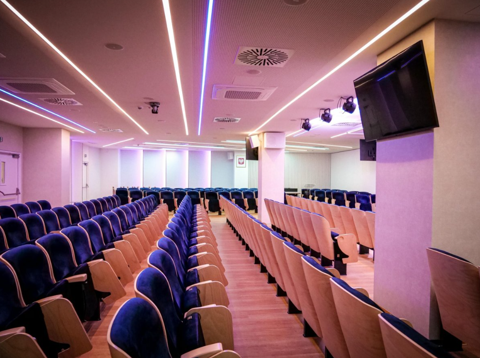 Dzięki elastycznemu układowi przestrzeni organizatorzy mają pełną swobodę w dostosowaniu sal do liczby uczestników oraz formatu wydarzenia, bez kompromisów w zakresie komfortu.