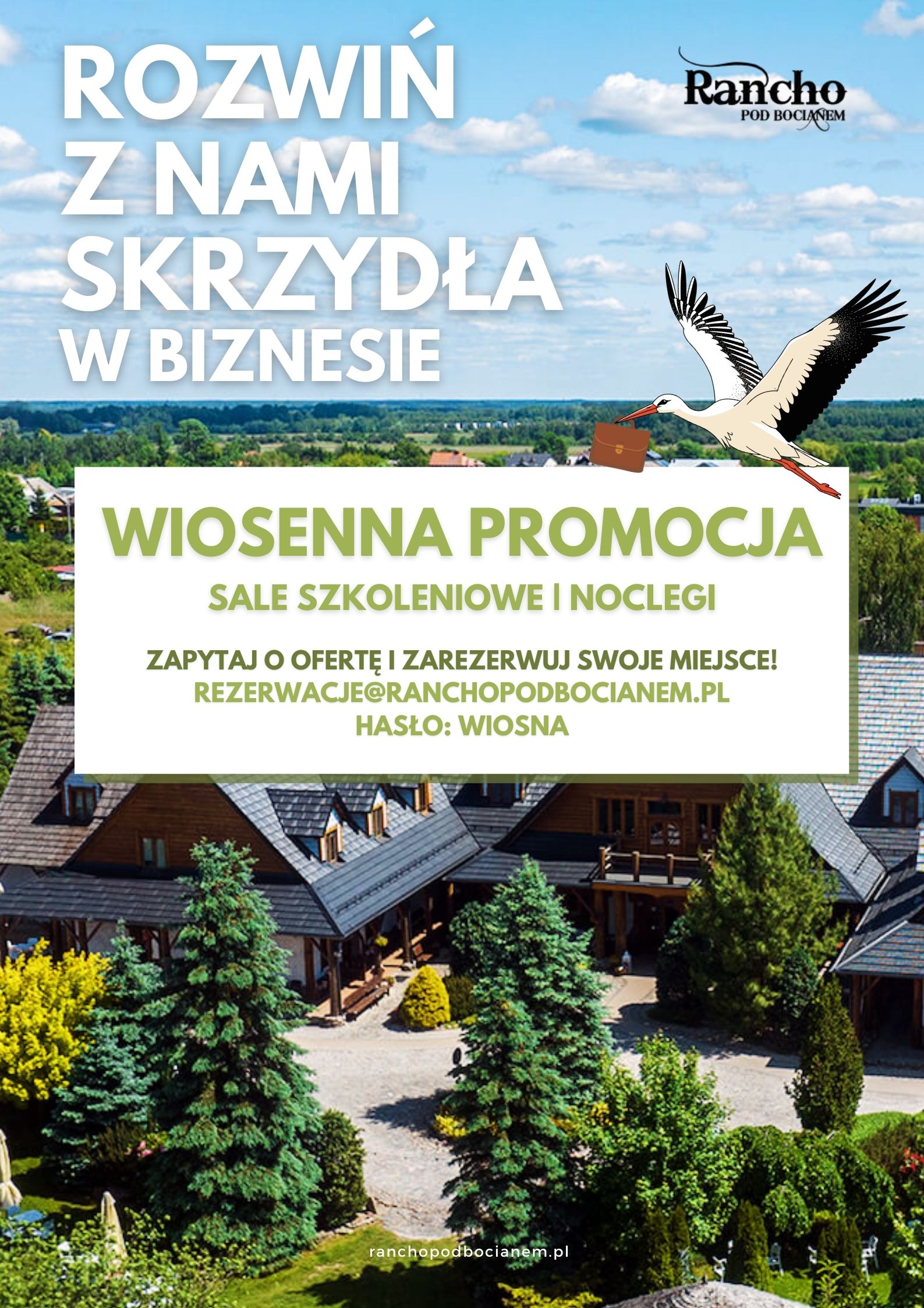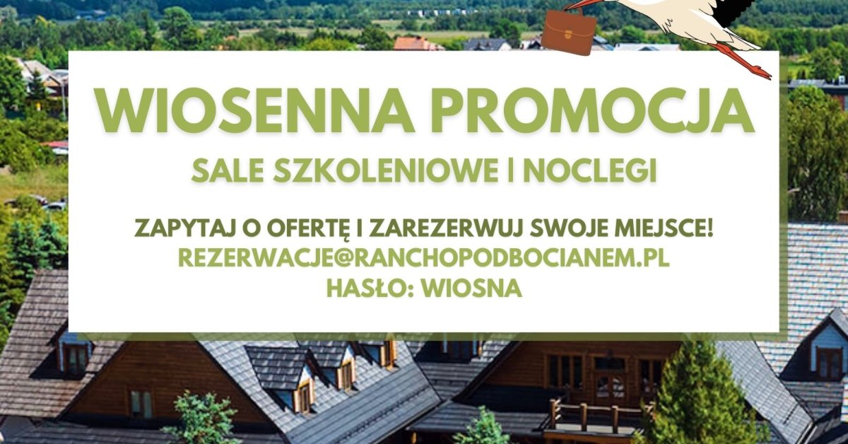 Rancho pod Bocianem przygotowało wiosenną promocję na organizację szkoleń i konferencji. Oferta obejmuje sale konferencyjne, noclegi oraz możliwość organizacji wydarzeń w otoczeniu natury, zaledwie 25 km od Warszawy!