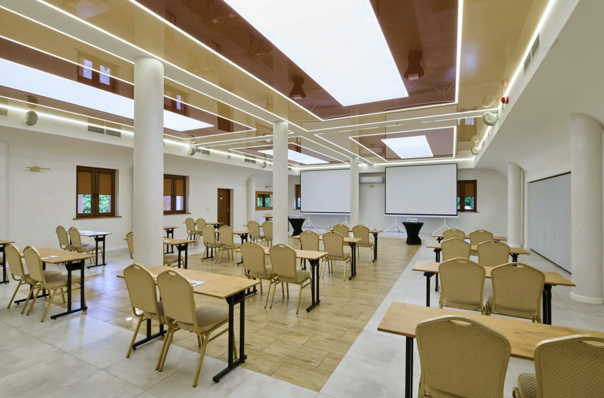 Największa sala pozwala na organizację wydarzeń nawet dla 300 uczestników, co sprawia, że obiekt sprawdza się zarówno przy dużych konferencjach, jak i kameralnych szkoleniach czy warsztatach. Elastyczna aranżacja przestrzeni umożliwia dopasowanie układu sal do charakteru wydarzenia - od spotkań zarządu i prezentacji po rozbudowane projekty szkoleniowe czy konferencje branżowe.