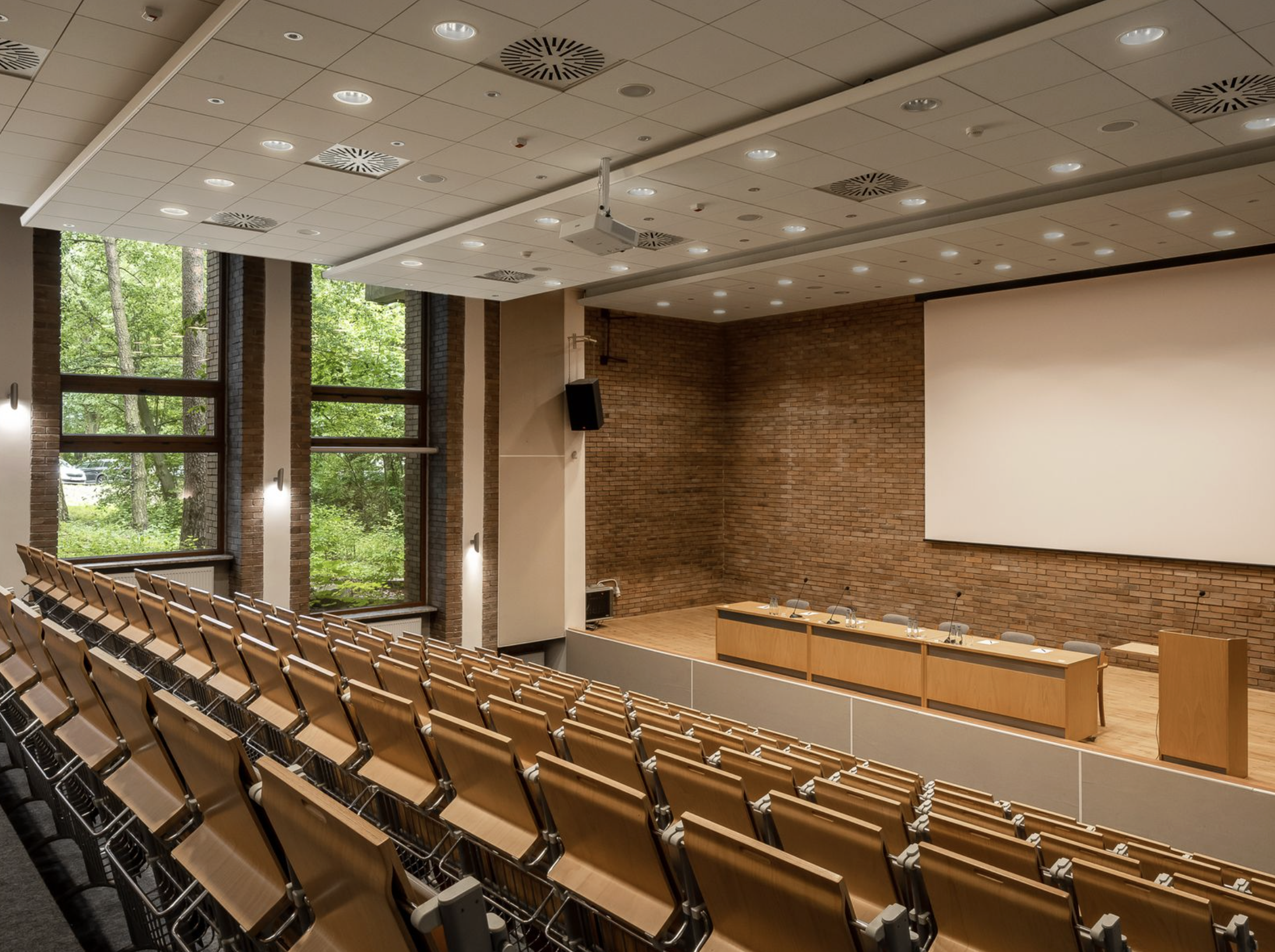 Sercem zaplecza konferencyjnego jest Forest Hotel - nowoczesny obiekt o wyrazistej, brutalistycznej architekturze. To tutaj znajduje się rozbudowane centrum konferencyjne z siedmioma salami o zróżnicowanej powierzchni, w tym aulą, która może pomieścić do 180 osób. Sale są jasne, funkcjonalne i zaprojektowane tak, aby wspierać różne formaty spotkań – od warsztatów, przez szkolenia, po większe konferencje i sympozja. Dużym atutem Forest Hotel jest także jego otwartość na przestrzeń zewnętrzną. Dziedziniec, taras oraz aż siedem hektarów terenów zielonych pozwalają organizować eventy plenerowe, pikniki firmowe, pokazy czy strefy relaksu między sesjami konferencyjnymi.