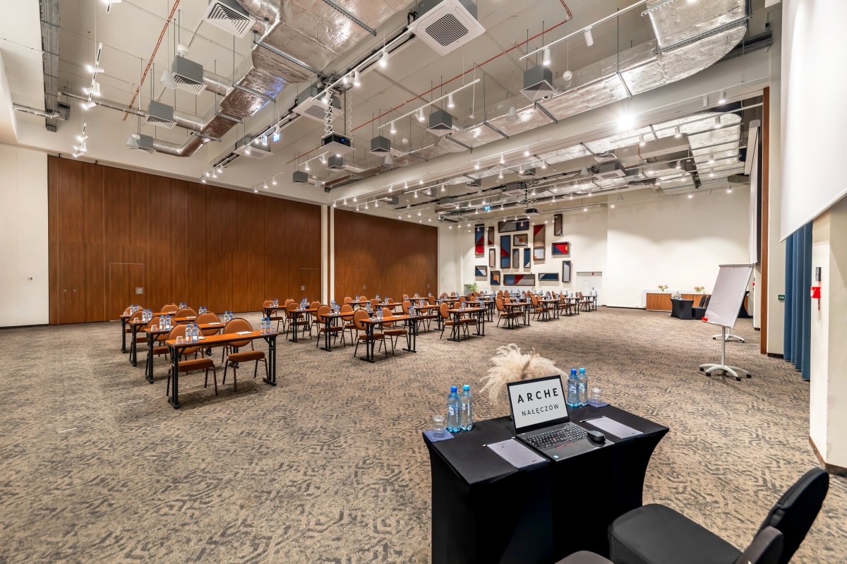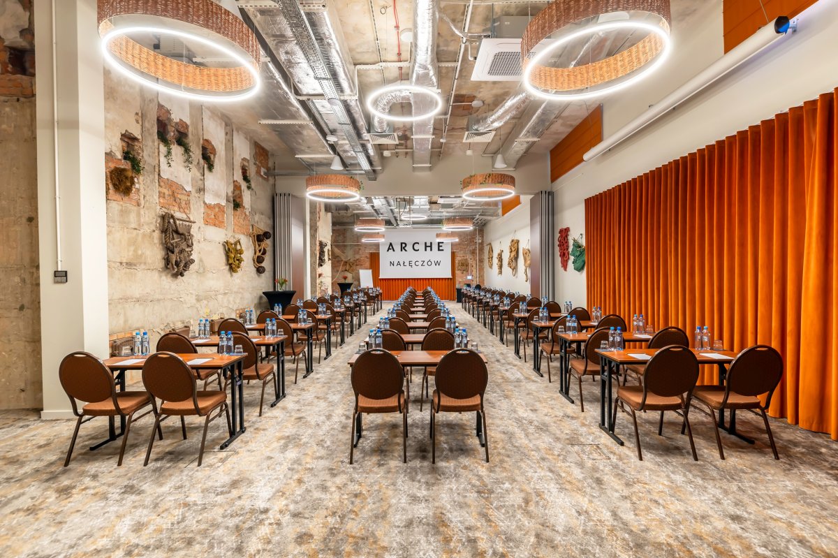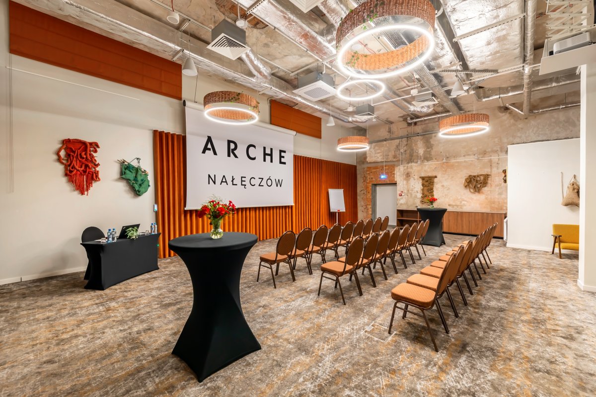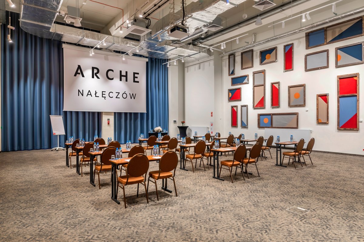 W Arche Nałęczów czeka na Gości kompleks czterech różnorodnych sal, które razem tworzą przestrzeń o łącznej powierzchni 850 metrów kwadratowych. Największa z nich została zaprojektowana z myślą o dużych wydarzeniach i może pomieścić nawet 600 uczestników.