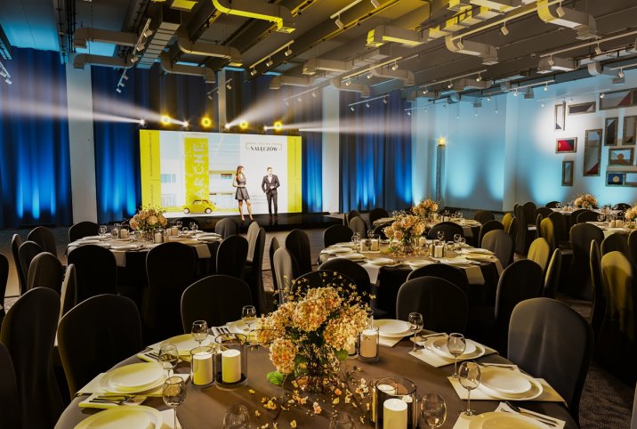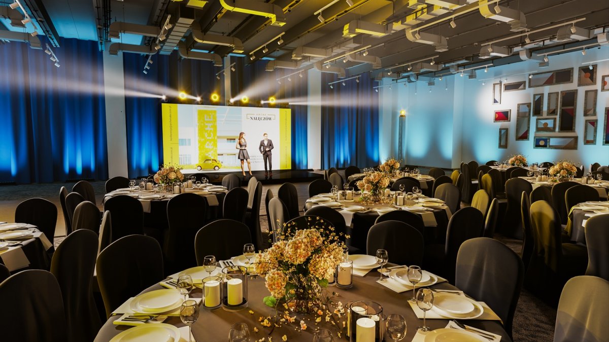 Co więcej, całą przestrzeń można z łatwością podzielić na dziewięć mniejszych, samodzielnych sal, z zachowaniem pełnego zaplecza technicznego w każdej z nich.