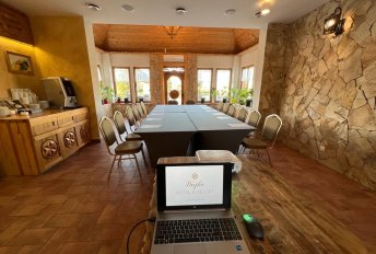 Hotel & Resort Bajka oferuje kompleksową obsługę konferencji, szkoleń, warsztatów, spotkań firmowych oraz wszelkiego typu eventów okolicznościowych. Dzięki temu, że obiekt posiada zadbaną strefę ogrodową, to idealne miejsce na pikniki, koncerty oraz gry team-buildingowe. Bajka Hotel & Resort posiada 2 sale konferencyjne i salę namiotową przeznaczoną na eventy i jubileusze. Większa z sal to miejsce dla 140 osób. Mniejsza salka przeznaczona jest dla 30 uczestników kameralnych spotkań, zebrań i narad. Dla spotkań biznesowych lub szkoleń o mniejszej ilości osób, ale w niezwykłym stylu i klimacie Bajka Hotel & Resort proponuję Villę Bajka, w której mogą odbywać się kameralne szkolenia do 8 os. Villa Bajka to ekskluzywny i jednocześnie urokliwy drewniany dom w stylu góralsko-alpejskim o powierzchni 131 m2. Położony nad stawem ,,Zatoki Bajka" mieszczący do 9 gości. Swoim designem nawiązuje do architektury hotelu oraz restauracji położonej na 28 ha kompleksie Hotelu & Resort Bajka. Na parterze Villi znajduje się przestronny salon z w pełni wyposażonym aneksem kuchennym oraz łazienka z prysznicem i sypialnią z wyjściem na przestronny taras, z którego rozpościera się przepiękny widok na zatokę, plażę oraz las. Na piętrze Villi znajdują się 2 sypialnie oraz duża ekskluzywna łazienka z wanną, oraz prysznicem. Dodatkowym atutem jest sauna sucha, z której często korzystają nasi Goście. Villa wyposażona jest w klimatyzację oraz ma wszelkie udogodnienia sprawiające, że pobyt z rodziną lub przyjaciółmi będzie bajeczny.