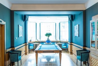 Do dyspozycji Gości oddajemy również klimatyczny CAFE BAR (w oranżerii z widokiem na Park Szachowy), salę klubowo-konferencyjną z bilardem i kominkiem, kinem 3D, biblioteczka z wyselekcjonowaną literaturą piękną, salonik hazardzisty oraz dwie bogato wyposażone strefy relaksu i upiększania ciała - SPA i MEDICAL oraz Salę Fitness z siłownią.