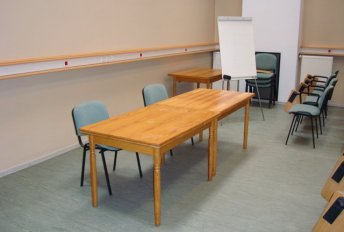 Sala A i B to pomieszczenia o powierzchni 81 i 82 mkw, które znajdują się na parterze budynku głównego. Połączenie tych sal umożlwia ugoszczenie 116 osób. Pomieszczenia te są wyposażone w sprzęt nagłaśniający, rzutnik multimedialny oraz komputer z dostępem do Internetu. Obok sal A i B usytowana jest pracownia komputerowa D, przestronny hol, szatnia oraz toalety.