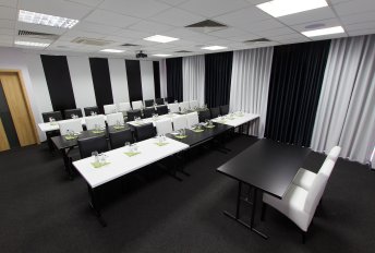 Sale posiadają możliwość łączenia tworząc salę wielkości ok. 90 m kw., która jest idealna na organizację spotkań biznesowych, konferencji, szkoleń dla maksymalnie 100 osób.