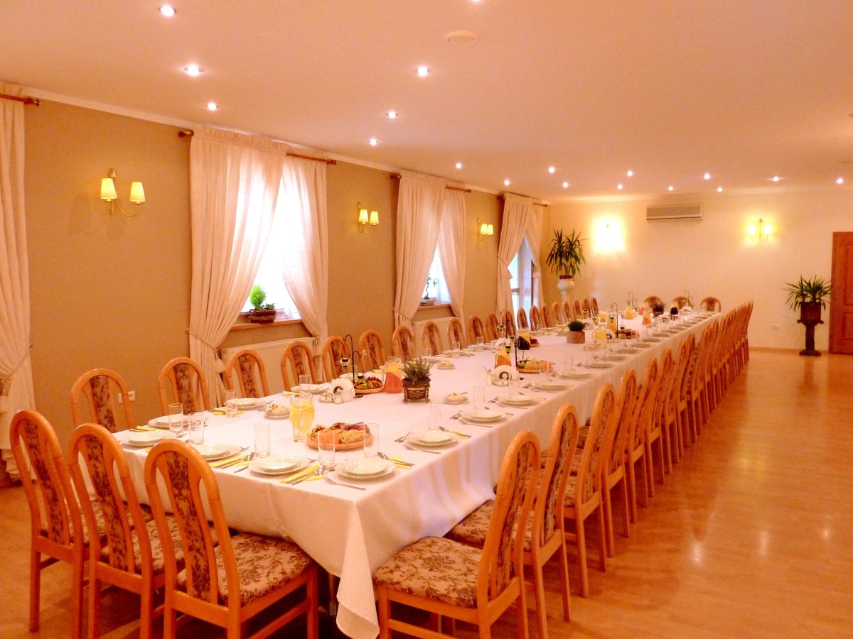 Bez problemów można ustawić stół z cateringiem lub przygotować miejsce dla DJ/zespołu muzycznego. Z sali konferencyjnej jest bezpośrednie wyjście do ogrodu. Goście mogą spędzać tam przerwy w pracy, ciesząc się czystym powietrzem i urokliwą zielenią. Na wyposażeniu podstawowym sali znajdują się: flipchart, głośniki z mikrofonem, laptop, rzutnik multimedialny.