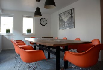 Wyposażenie dostępnej sali konferencyjnej obejmuje wysokiej klasy projektor o rozdzielczości FULL HD, flipchart oraz wskaźnik laserowy. Wszystkie stanowiska posiadają dostęp do zasilania 230 V i portu USB. Dodatkowo uczestnicy spotkań mogą korzystać z kącika kawowego, w którym znajduje się ekspres.