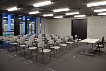 Poznański Park Technologiczno Przemysłowy - Za Bramką proponuje Państwu 2 przestronne i wielofunkcyjne sale biznesowe. Można je ze sobą łączyć, co w rezultacie pozwala na organizację małych, średnich oraz dużych eventów. Maksymalną powierzchnię zyskujemy łącząc Salę A z Salą B - wówczas przestrzeń umożliwia zaproszenie aż 100 osób w ustawieniu teatralnym.