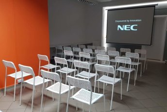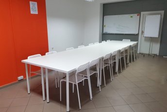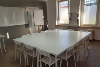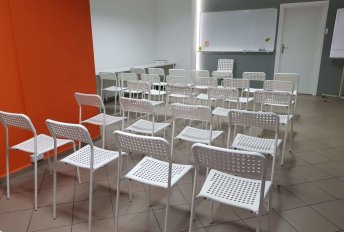 Sala szkoleniowa zlokalizowana przy ul. Krzywej w Poznaniu umożliwia organizację spotkań biznesowych dla maksymalnie 24 osób. To nowoczesne pomieszczenie o powierzchni 50 mkw, usytuowane na parterze budynku. Sala posiada 2 okna z roletami zewnętrznymi. Pomieszczenie zostało wyposażone w nowe stoły, krzesła, a także wysokiej jakości sprzęt audiowizualny, taki jak projektor multimedialny, tablica suchościeralna oraz flipchart. W sali znajduje się także drukarka, z której można skorzystać w razie potrzeby pilnego wydrukowania dokumentów.