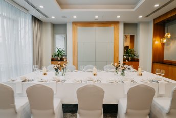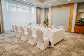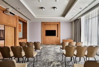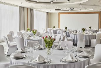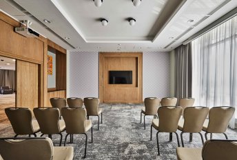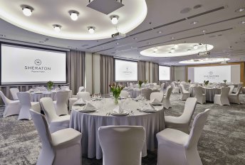 W Hotelu Sheraton Poznań na klientów biznesowych czeka profesjonalne, nowoczesne piętro konferencyjne, w którym z powodzeniem zorganizować można udane i owocne eventy, takie jak konferencje, zebrania, warsztaty, a nawet duże bankiety. 350 metrów kwadratowych jasnej i stylowej przestrzeni jest nowocześnie wyposażone i gwarantują pełen sukces każdego wydarzenia. Co więcej, doświadczony, profesjonalny zespół pomoże w organizacji najwyższej jakości eventów, które na długo pozostaną w pamięci Gości. Tutaj zobaczyć można wirtualny spacer po luksusowym piętrze konferencyjnym.